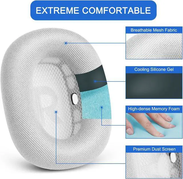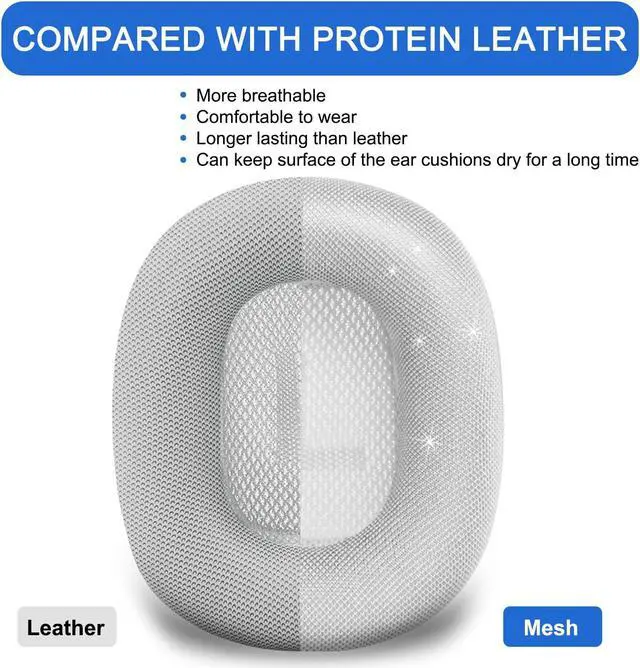 [Premium Mesh Material] The replacement ear cushions for Apple AirPods Max headphone is made of premium mesh fabric, just like original ear cups, last longer than leather material. We have also adopted the silicone gel under the mesh layer, make our ears more comfortable when wearing and not easy to sweat, dry and comfort for one day's listening.