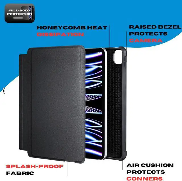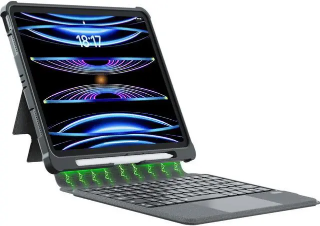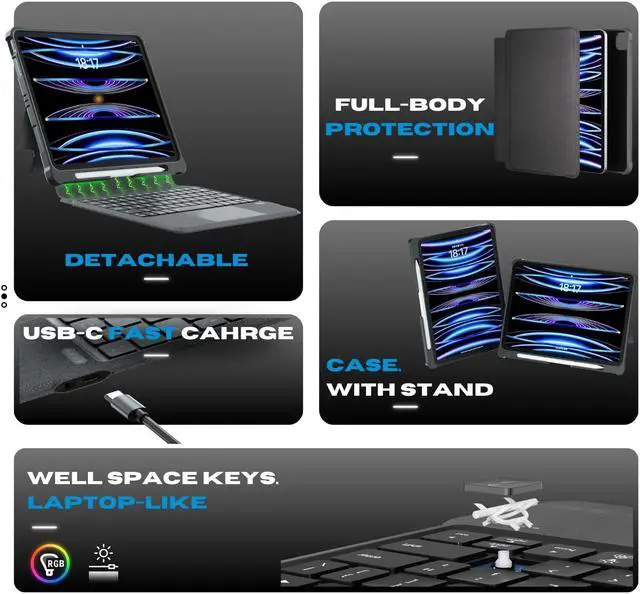 Horizontal or Vertical UseThe keyboard for iPad a detachable protective cover, which provides you with horizontal and vertical viewing angles for use. It can be easily switched between iPad and Mac. The iPad protective case with keyboard is firmly attached to the protective case by a long magnetic strip. The keyboard can be removed and stored separately, leaving only the sleeve and kickstand for easy portability.