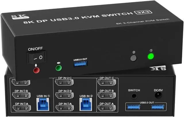 KVM Switch Triple Monitor Ultra HD 8K@60Hz: 3 Monitors KVM Switch DisplayPort: support resolution up to 8K@60Hz/4K@144Hz, and backward compatible with lower resolution. Note: that you can only get 8K if both your computer's graphics card and monitor support 8K