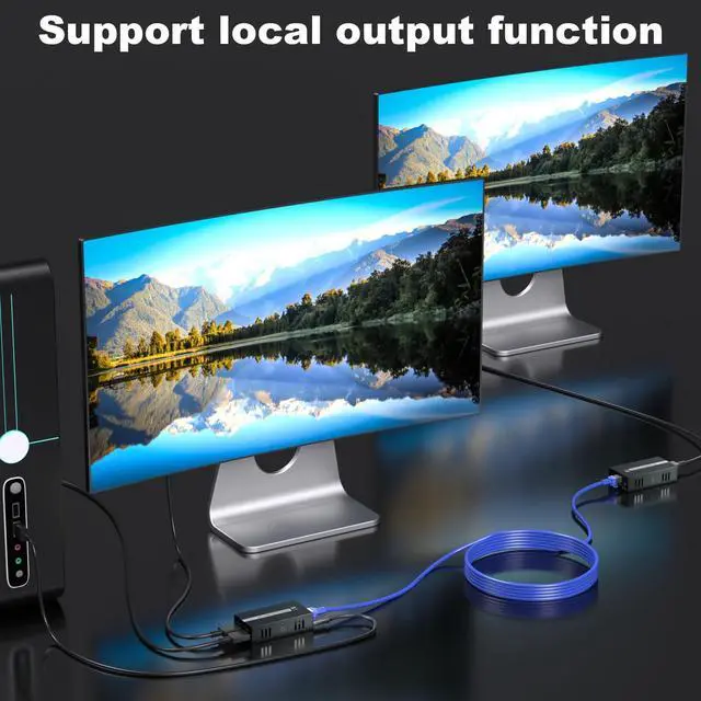 The HDMI extender boasts an impressive transmission range of up to 50 meters (164 feet) utilizing Cat5e/6/7/8 network cables, offering unparalleled flexibility in configuring your audiovisual systems. Whether you're linking your computer to a remote display or disseminating content across multiple screens in a professional environment, this device guarantees a robust and dependable signal. Its versatility and reliability make it a must-have for any audiovisual setup, ensuring seamless connectivity and optimal performance.