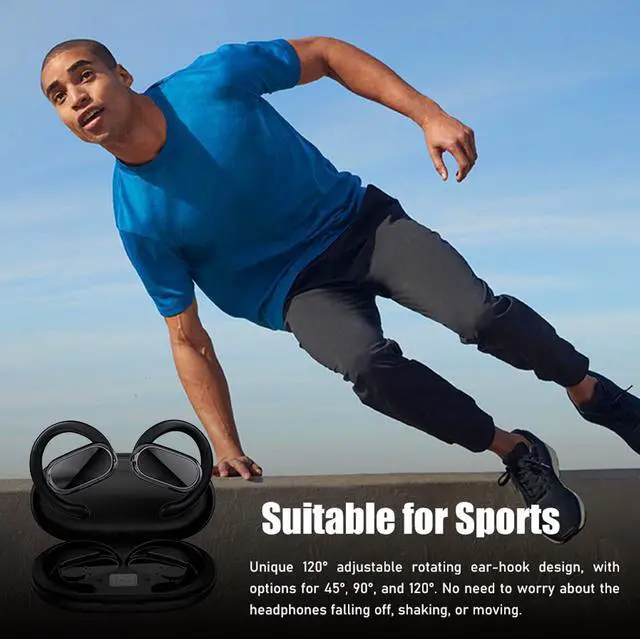 [True Lightweight Wearing & Stable Fit] The overall weight of the open ear headphones wireless bluetooth can stay on the ears softly and comfortably. Compared with in-ear headphones and bone conduction headphones, the open ear earbuds wireless bluetooth have ergonomic design to achieve a truly painless & comfortable wearing experience, when sport, work, talking and so on.