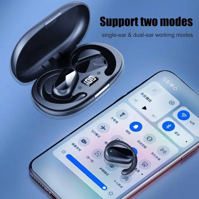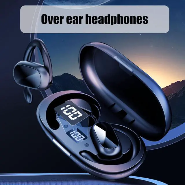 open ear headphones wireless bluetooth earbuds over ear wireless earbuds running headphones over the ear earbuds exercise headphones sport headphones around ear noise cancelling headphones (Black)