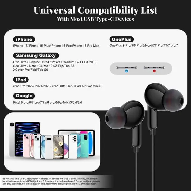 USB C Headphones, Type C Earphones for Samsung S24/ S24 Plus/ S24 Ultra Wired Earbuds with Microphone