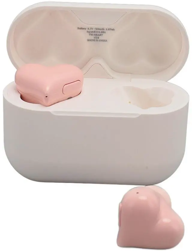 Bewinner Heart Shaped Cordless Earbud, Noise Canceling Headphones, Bluetooth 5.3 HiFi Stereo Earphones with Charging Case for Gym Office School (Rose)
