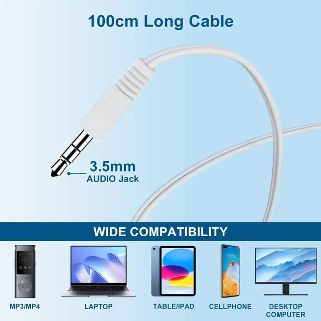 Wide Range of CompatibilityApprox. 100 cm/ 39.37 inches cable and 3.5 mm stereo and fit most smartphones, tablets, computers, laptops, MP3 players and other devices