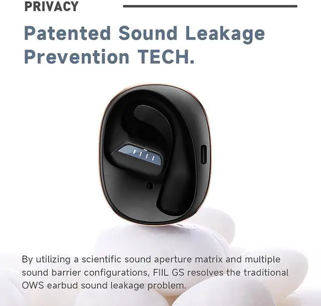 Patented sound leakage prevention technology FIIL GS Open-Ear Wireless noise reduction earphone through a more scientific sound aperture matrix & multiple sound barrier configurations, sound leakage is systematically prevented.