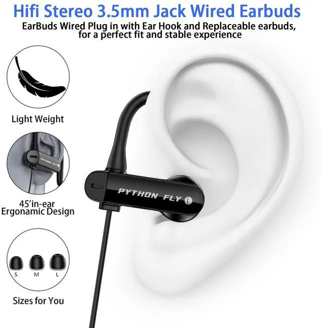 Over Ear Wired Earbuds: AIAUXAI 3.5mm Jack wired earbuds Designed for sports and other active use, headphones Equipped with a rubber earhook that fits around the outer ear to hold the earbud in place. and with 3 different sizes of silicone ear buds ensures can ensure a comfortable Perfect for Sports, Running, exercising or Workout