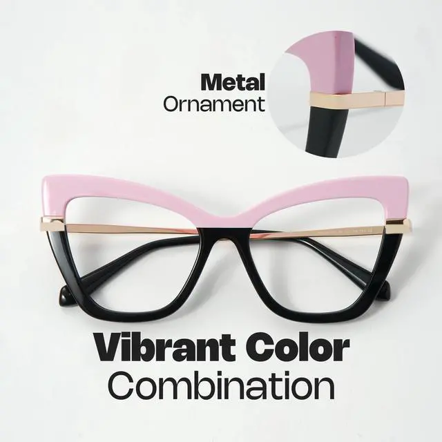 Unique Design These glasses frame are designed with two color combination, its metal accents attached to the temples, and the oversized cat-eye shape is suitable for all face shapes, making you look stylish and sexy