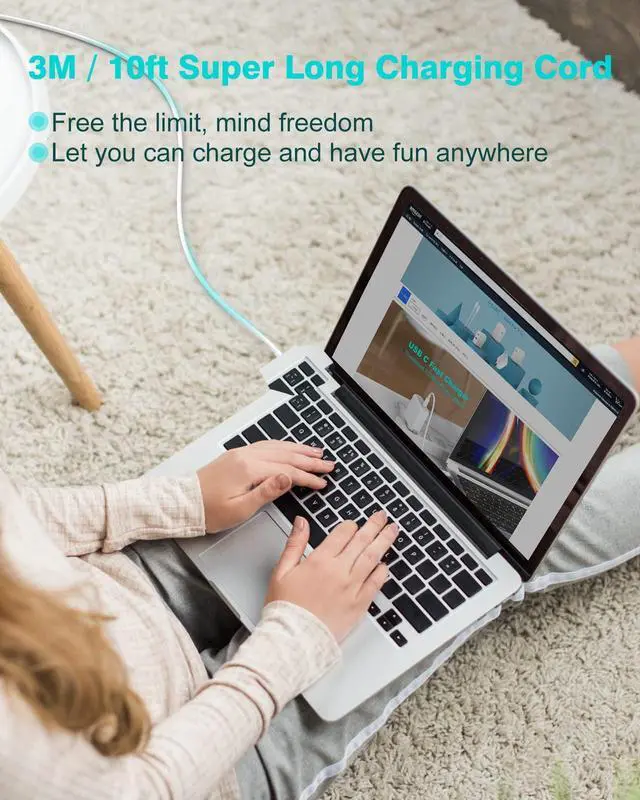 10ft 96W USB C Charger- Super Fast Charging: full charge for MacBook Pro 16 inch in only 1h 47mins, fast charge MacBook Pro 14 inch to 50% in only 30 mins as fast as MagSafe 3 Cable, much faster than 67W for 14 inch; higher charging performance than 87W, 67W, 61W, 30W USB C charger while charging for MacBook Pro 15/14/13/12 inch, New M3 M2 M1 MacBook Air 13 15 inch