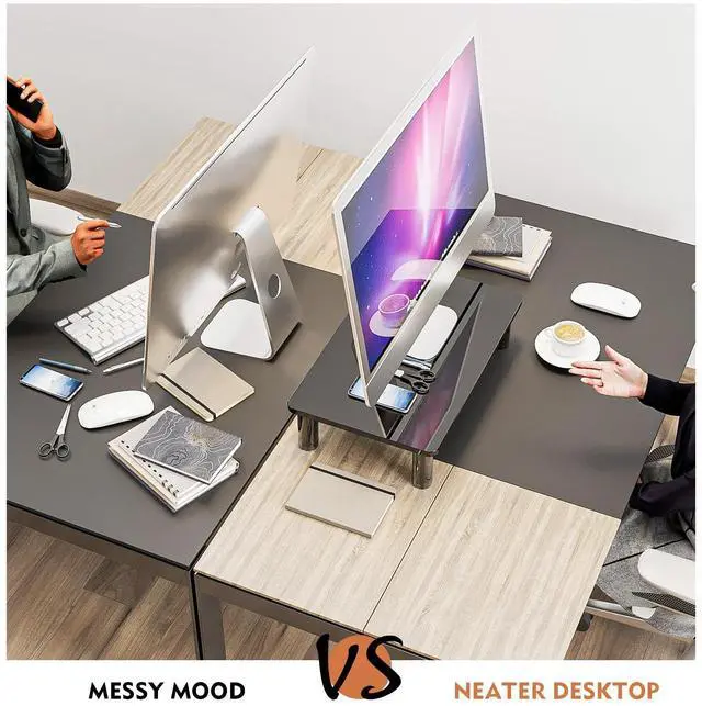 Good Health: Monitor or notebook computer is elevated to a proper ergonomic viewing position, creating best posture which helps reduce neck and back strain,Then stow laptop underneath monitor riser for space-saving storage