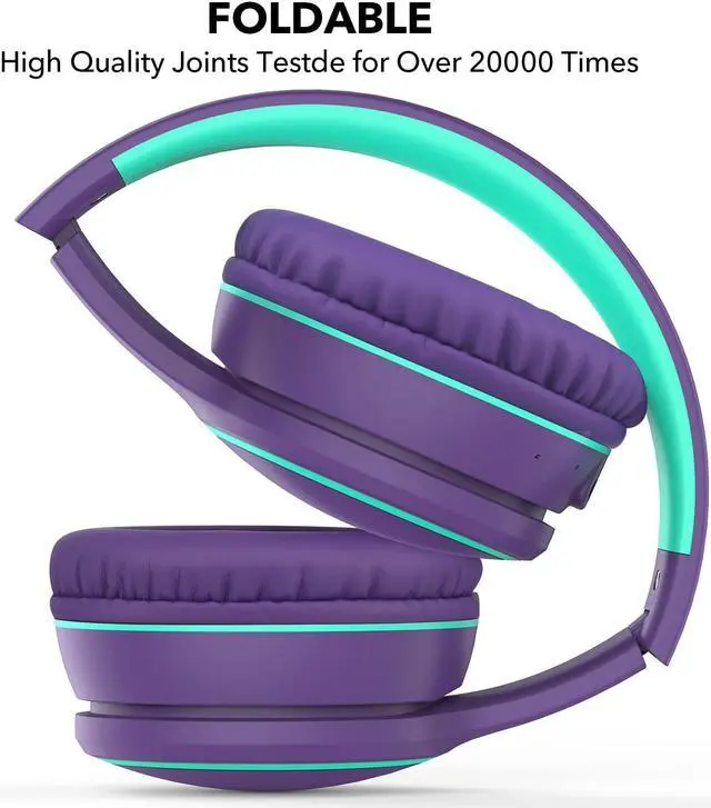 RORSOU B10 Bluetooth Headphones Over Ear, 2 EQ Music Modes(Normal/Bass) and 50H Playtime Wireless Headphones with Mic, Lightweight Folding HiFi Stereo Headset for iPad/Travel/Tablet/PC/Home (Purple)