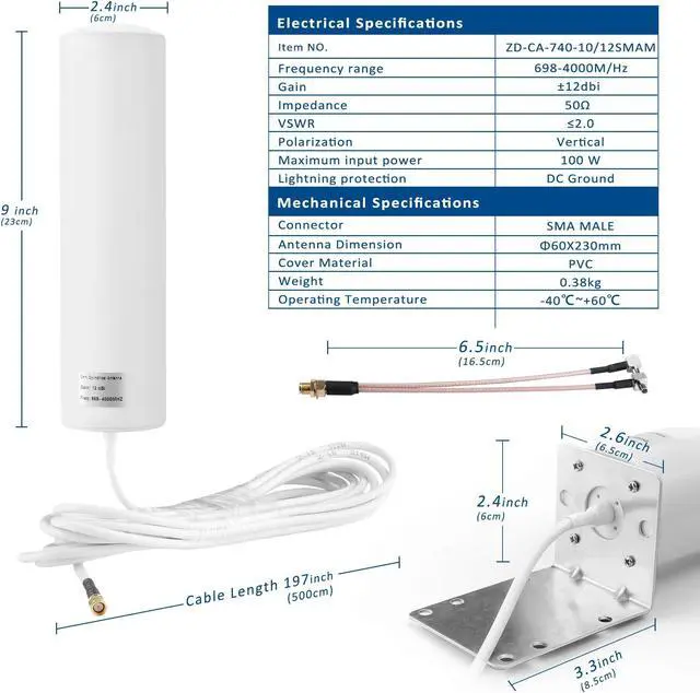 * Wide band 698-4000MHz compatible for 3G/4G/5G mobile signal booster.