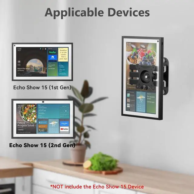 MOUNT FOR ECHO SHOW 15 (1st, 2nd Gen) and 13"-27" Monitors. This Mount bracket is made from stable steel material, designed with three solid arms, solid and holds up to 30 pounds. (NOT include the Echo Show 15 display)
