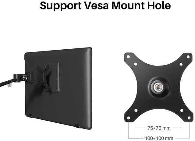 The monitor arm ST410 can match monitors with 75x75mm or 100x100mm VESA holes. With the detachable VESA plates included in the package, you can easily mount your monitor.