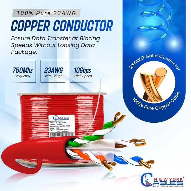 Wooden Spool for Easy Install: The Cat6a Ethernet Cable CMR comes on a durable wooden spool, ensuring a seamless, tangle-free installation. Perfect for professional setups with Cat6a CMR 1000ft, enhancing ease and efficiency in riser environments.