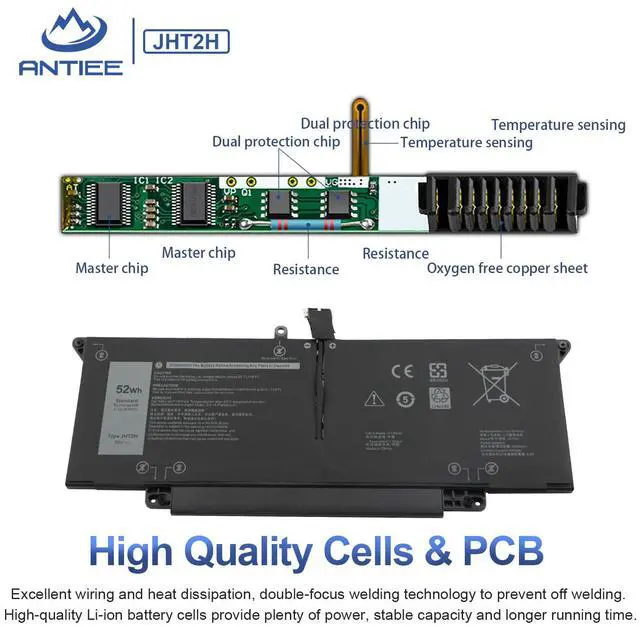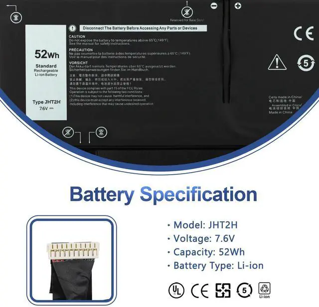 JHT2H Laptop Battery Replacement for Dell Latitude 7310 7410 Chromebook Enterprise Series P34S P34S001 04V5X2 Y7HR3 35J09 0HRGYV 0WY9MP XMV7T 009YYF 7CXN6 T3JWC 0YJ9RP XMT81 X825P K36KR 52Wh 6500mAh