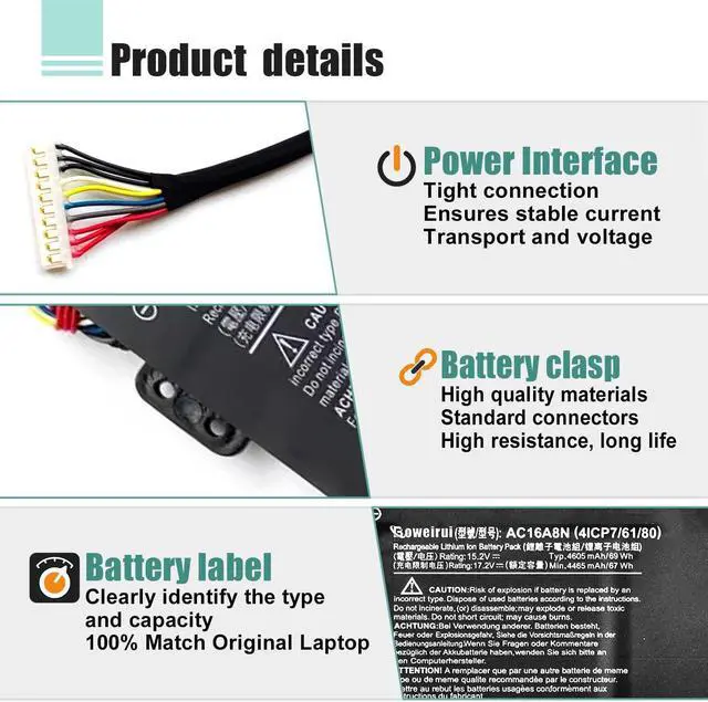 • SpecificationsBattery Model Name: AC16A8N , Voltage: 15.2V; Capacity: 69Wh /4605mAh