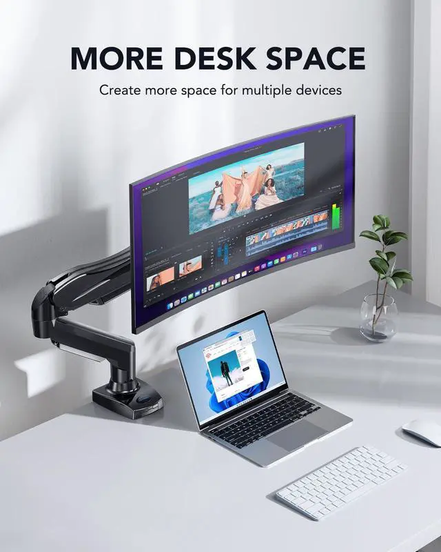 Full Adjustable: This PC monitor stand can remain completely stable at any angle without any extra work. Compared with other single monitor arm adjustment methods, huanuo can make you adjust screws repeatedly, this monitor arm is easy to use and has a tilt range from -30°to +80°, ±90 ° swivel, and 360°rotation, so your screen can be lifted up to 39.6cm from desktop with one hand.