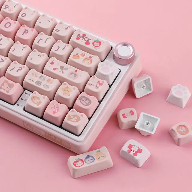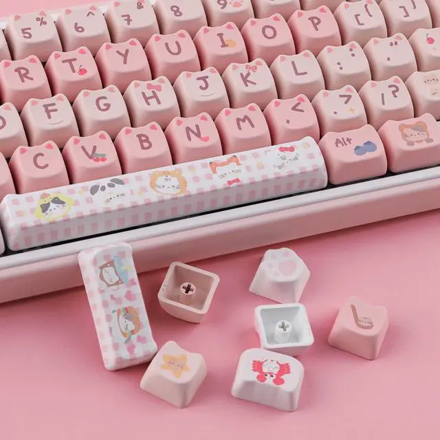 Thick PBT KeycapsThese 140 keys cute pink meow meow cat keycaps are made of PBT material, with a matte texture and anti-grease coating, thick and durable, fine workmanship, and not easy to get dirty