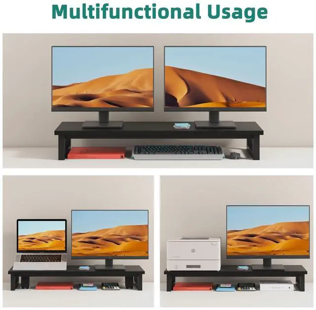 Multi-Purpose StandMonitor stand riser provides a nice workspace, it can be used as a computer monitor stand, monitor riser stand, printer stand, laptop stand, tv riser stand etc. Desktop organzier shelf offer extra space to store your keyboard or other accessories under your monitor