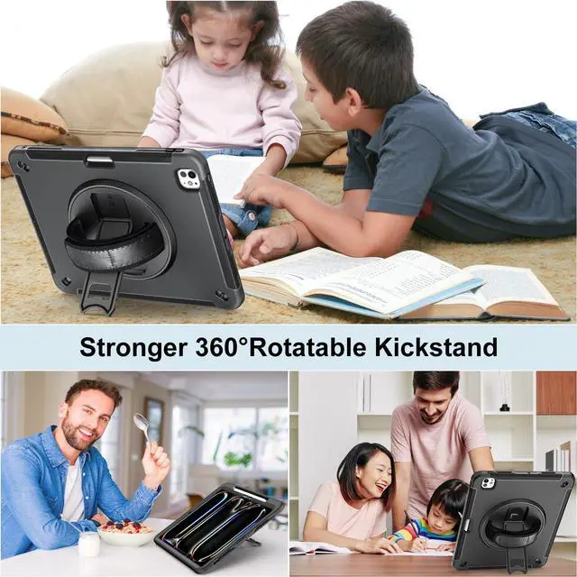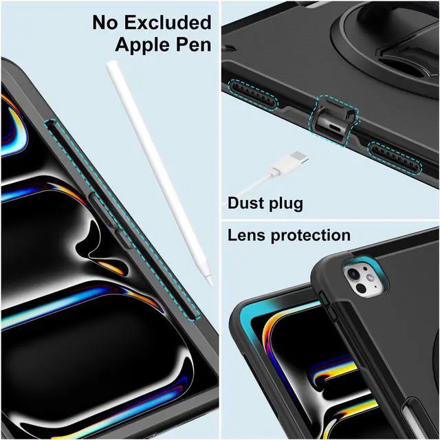 ENHANCED FULL-BODY PROTECTION &10-SHOCK: iPad 13 Pro Case exceed 2X Military Grade Drop Test Standard [MIL-STD 810G-516.6], Triple full-body heavy-duty protection provides up to 15ft drop protection, made of 2 durable PC and 1 flexible TPU bumper lasts 10× shock-resistant. Upgrade built-in sponge technology adds extra heat-dissipation