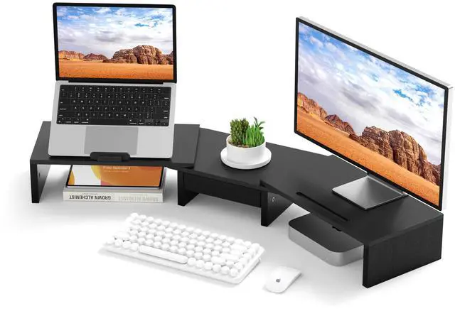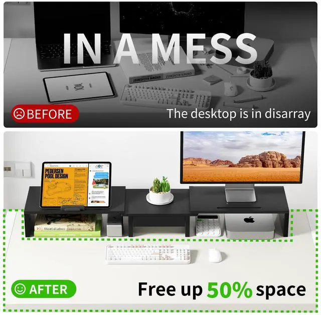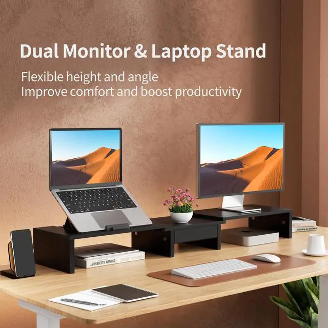 Space-Saving: Supports two monitors with extra storage underneath for a tidy desk.