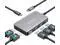 USB C to 6 in 1 hub: SWITCHFLUX 6 in1 USB Hub integrates multiple computer ports into one, including 3 USB ports, 2 HDMI port, and a 100wPD fast charging port. All of these can be realized through a USB-C port.