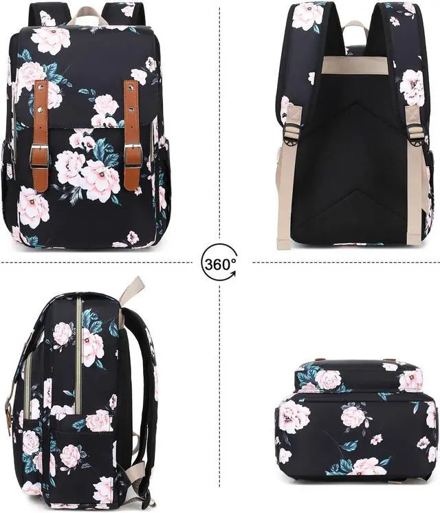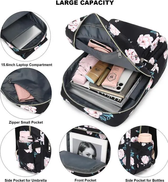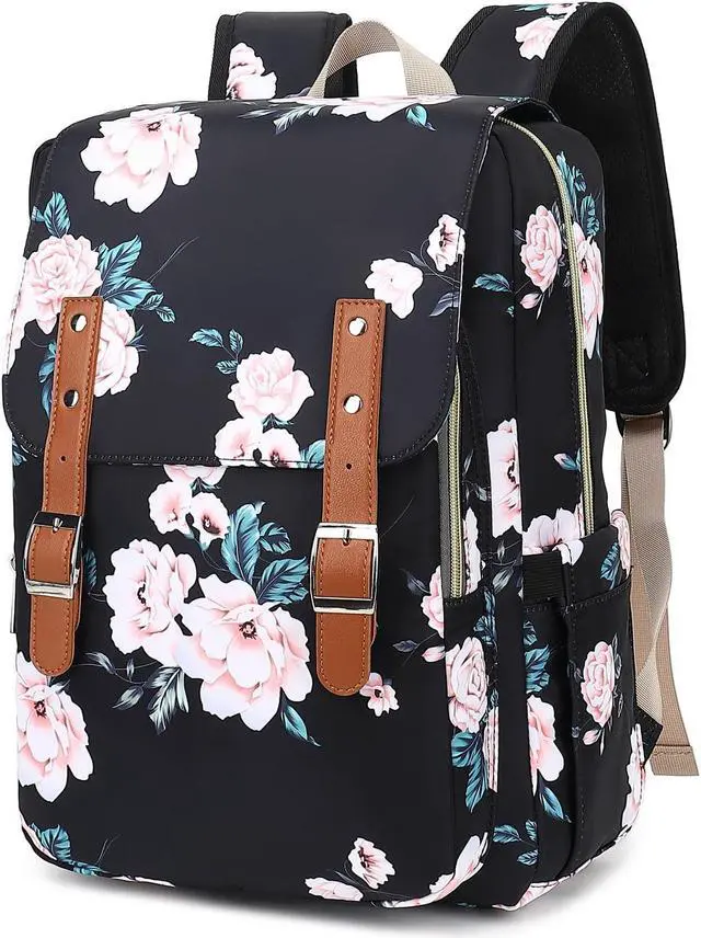 Kouxunt Floral Laptop Backpack for Women Girls, 15.6 inch College School Backpacks Travel Casual Daypack