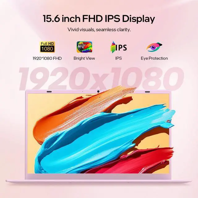 VIGSENUP Pink Laptop, 15.6 Inch Laptop Computer, 12GB RAM 512GB SSD, 4-Cores N150 Processor(Beat to N95, N5095), Up to 3.6 GHz, MS Office 2024, Win11 Pro, WiFi 6, BT 5.2, Webcam, USB-C