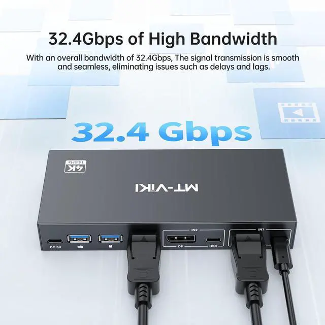 UHD 8K@60Hz Resolution: This DP KVM switch 1 Monitor 2 Computers supports resolution up to 8K@60Hz and backward compatible 4k@144Hz, 4k@120Hz, 4K@60Hz, 2K@60Hz, 1080p and below. NOTE: If need to achieve 8K@60Hz resolution, in addition to the computers and monitors needing to support 8K, your 8K DP1.4 cable input and output should be within 3.3FT/1m AWG30