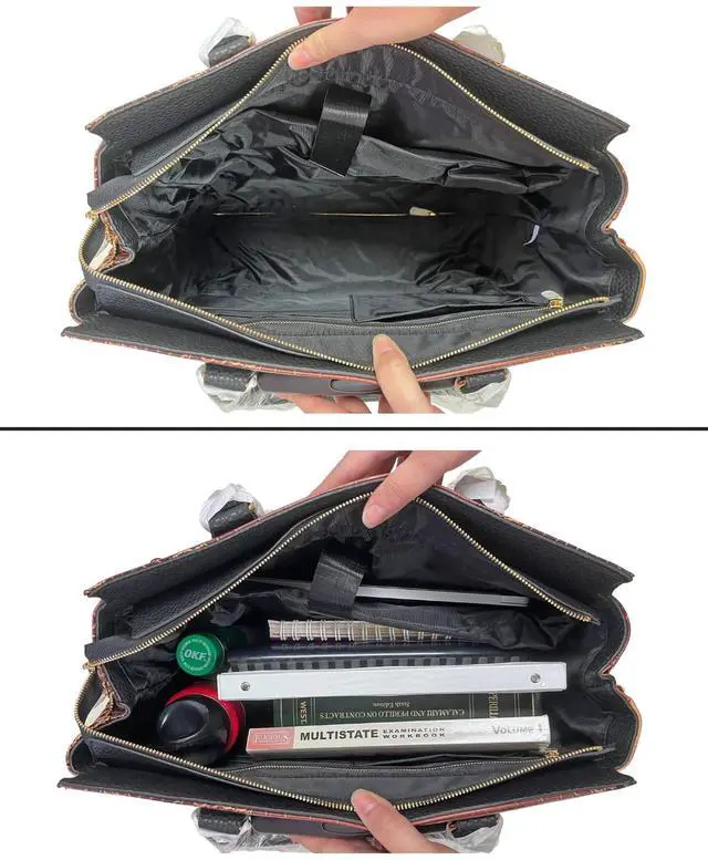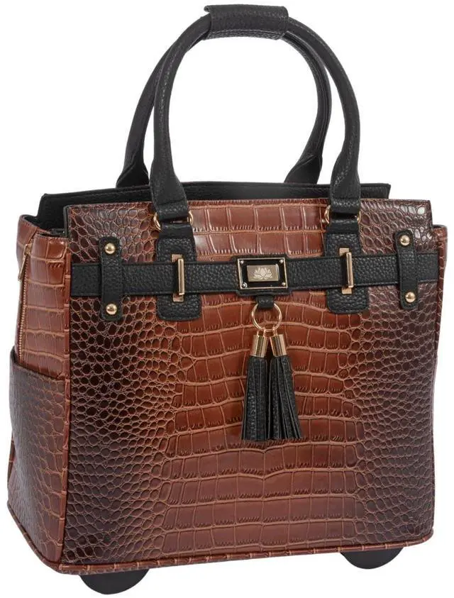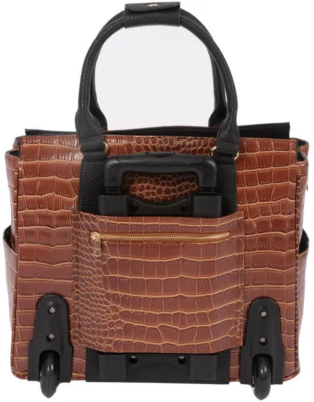 • Upgrade your work bag collection with our Manhattan brown alligator rolling briefcase for women and experience unmatched style and convenience. Stay organized, stylish, and professional with this chic rolling tote bag designed