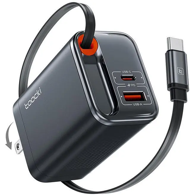 Toocki 3 in 1 Retractable Wall Charger 67W, Super Fast Charger USBC Charging Block with Type-C Cable & 2 USB Ports for iPhone 17 Pro Max Air, MacBook Air, iPad Pro, Galaxy S25, Pixel10 Pro, Laptops