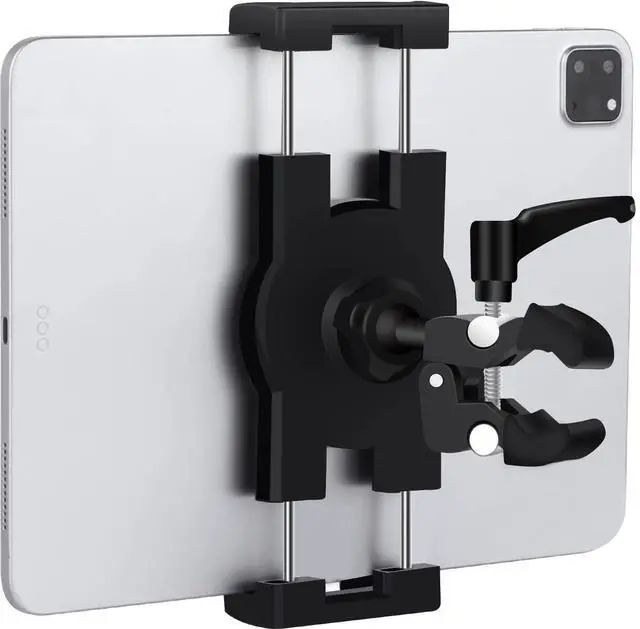 360°Adjustment: One 0.669 inch / 17 mm aluminum alloy ball head of tablet bracket, allowing you to adjust angle of device according to your viewing freedom,you can twist tablet clamp to change any directions,operation is very simple and relax, the 360°adjustment design provides the best angle for you,ABS material tablet clamp feet built-in anti-skid rubber pad and stainless rod,it can hold your devices firmly during rotation.