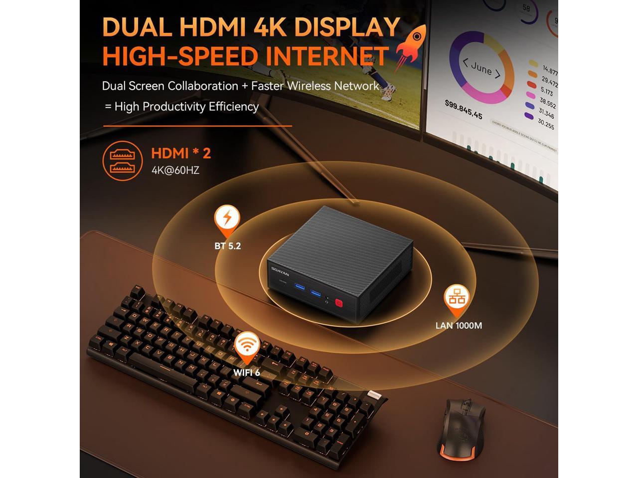 - UBUNTU LINUX MINI PC & Dual 4K DisplayThe small computer is specifically designed to run the Linux Ubuntu operating system flawlessly, providing a secure and highly customizable computing experience. The mini desktop computer can meet your different needs for those who prefer the flexibility and power of Linux. The linux mini pc delivers stunning 4K UHD visuals with powerful graphics performance. With dual HDMI 2.0, you can easily multitask and enhance productivity on two 4K@60Hz displ