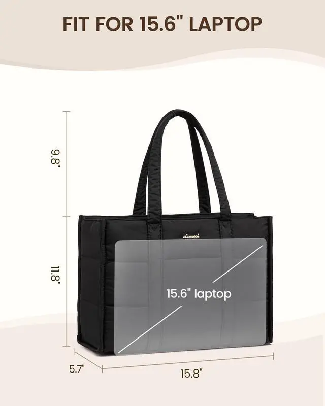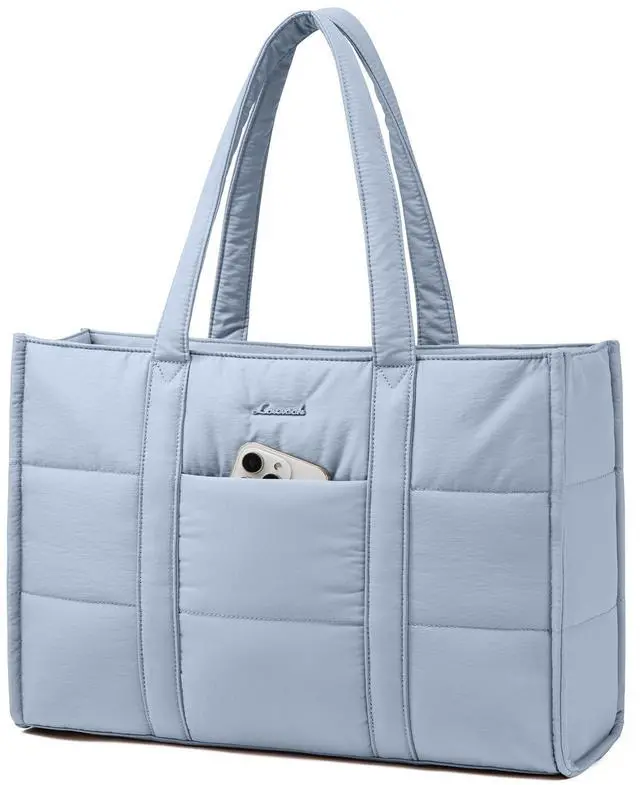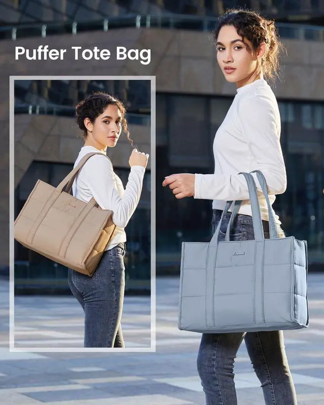 LOVEVOOK Laptop Bag for Women, Puffer Tote Bag for Work 15.6 Inch Large Computer Briefcase for Teacher Nurse, Quilted Lightweight Casual Shoulder Bag For Travel, Daily