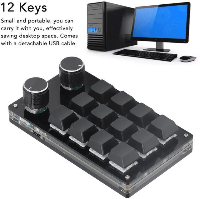 Key Type: 12 Key Mechanical Keyboard, 2 x Knob (the Knob Can Be Used As a Key to Press)