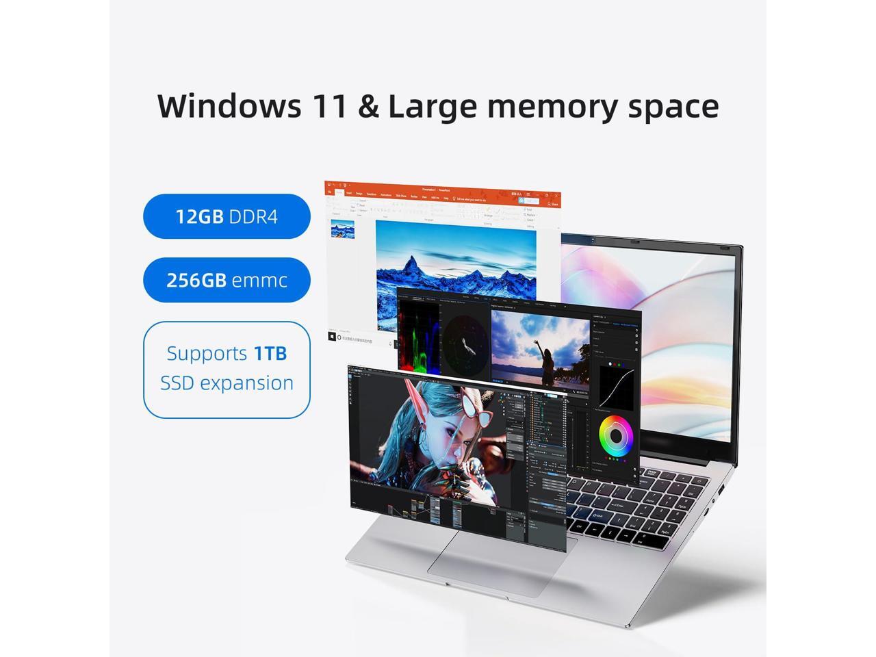 Through Multitasks with EaseEquipped with an Intel N5095 processor (up to 2.9GHz) and 12GB RAM, this business laptop glides through multiple apps without lagno more frozen screens when youre in the middle of a presentation or deadline. The 256GB ROM gives you ample space for documents, photos, and software, making it a reliable notebook for anyone who needs a laptop that keeps up.