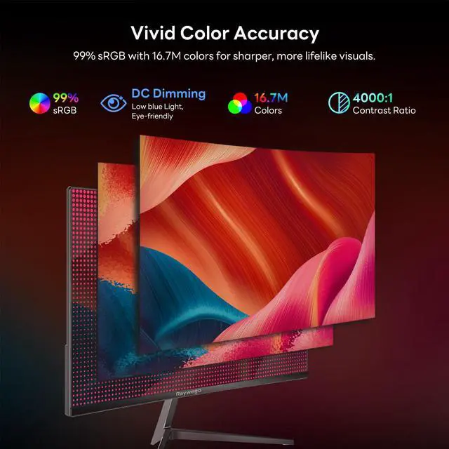 Raywego 24 inch Curved Gaming Monitor 180Hz 1ms,FHD 1920×1080P,4000:1 Contrast Ratio,with FreeSync & Eye-Care Technology, Support DP, HDMI,USB,3.5mm Port for Gaming Home Office,Wall Mount Install