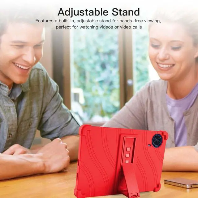 An integrated adjustable stand allows for hands-free viewing, perfect for watching videos, playing games, or video chatting.