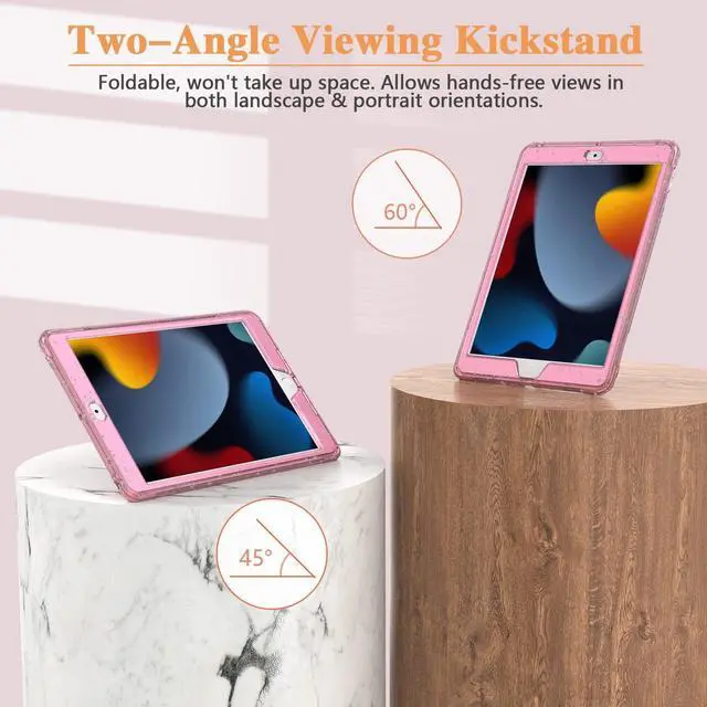 [Embedded Glitter Crystals]- Static glitter injection molded into the entire case, show off your iPad 10.2 inch while giving it ultimate protection. New translucent frosted glitter iPad 7th/8th/9th generation case is worth offering a beautiful and elegant gift choice for your family and friends.