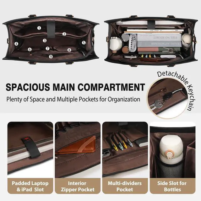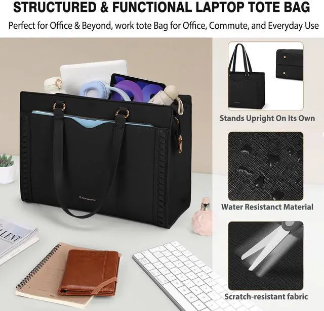 Masterfully Organized Laptop Bag: Well-structured design for modern chaos: the padded compartment embraces your 15.6" laptop, while the dedicated tablet slot guards your e-reader. Mesh pockets hugging your morning smoothie, pen slots organizing colorful highlighters, and a zippered pocket safeguarding lipstick and spare keys. The magnetic front pocket? Your lifesaver when fumbling for transit cards in the rain. This office bag doesnt just hold your world, it orchestrates it with grace