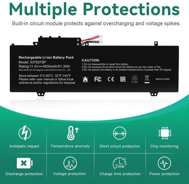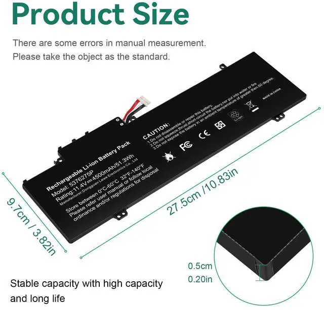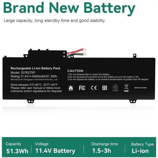 Specifications:Model:5376275P; Voltage:11.4V;Capacity:51.3Wh;100% brand new from manufacture. Grade A product ensure fast charges and low power consumption.