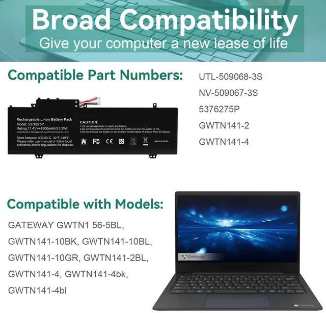 Futurebatt 5376275P Laptop Battery Replacement for Gateway GWTN141-10BK GWTN141-4 GWTN156-5BL GWTN141-2BL GWTN156-5BL UTL-509068-3S NV-509067-3S Series UTL-509068-3S NV-509067-3S