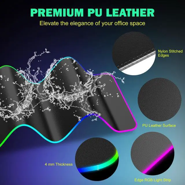 Large RGB Gaming Mouse Pad Large Size 800x300x4MM, GIM extended mouse pad provides a larger usable area to cover keyboard, mouse and other stuffs on the desktop when playing games or office work. At the same time, this pu leather mouse pad can protect your desk