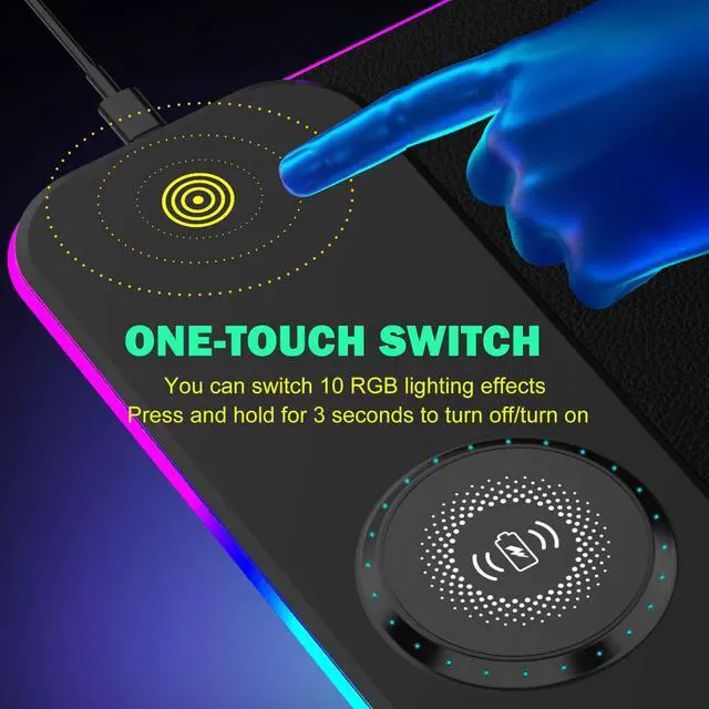 GIM PU Leather RGB Gaming Mouse Pad with 15W Magnetic Wireless Charging, 800x300x4mm LED Mouse Mat, 10 Light Modes, Non-Slip Rubber Base for PC MacBook Laptop