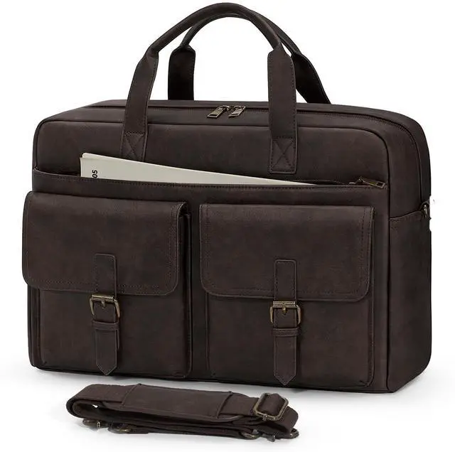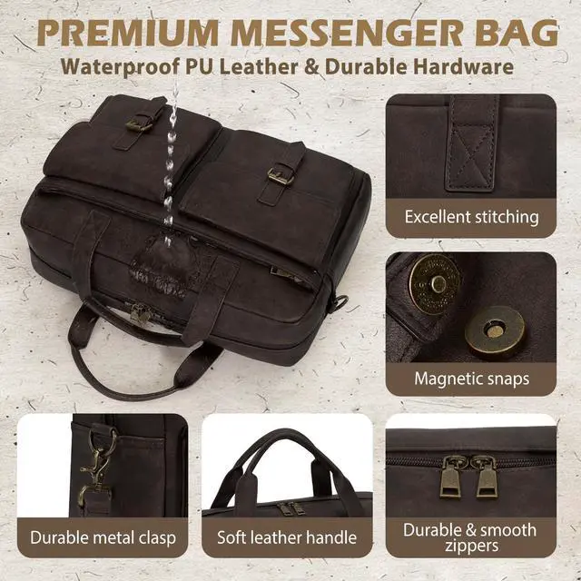 RAINSMORE Messenger Bag for Men 16 Inch Leather Laptop Bags Work Computer Briefcase Vintage Mens Satchel Shoulder Bag for Work, Office, Business, Travel, Coffee