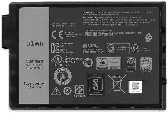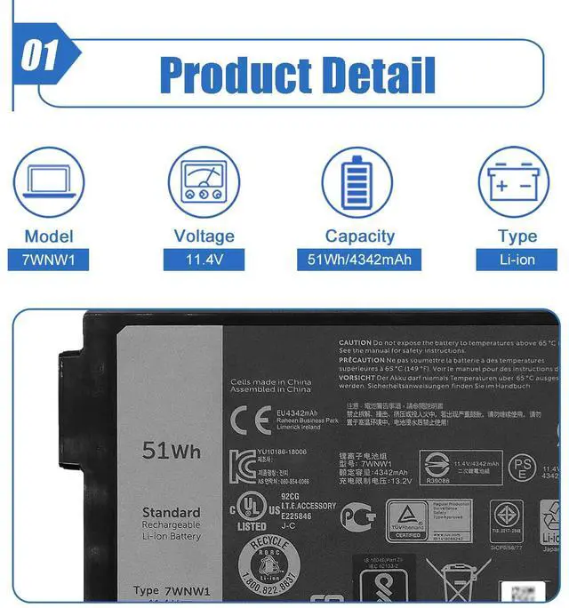 51Wh 7WNW1 Laptop Battery Compatible with Dell Latitude 5424 5420 7424 Rugged Extreme P85G P86G P137G001 P137G002 P85G001 P86G001 Series DMF8C DMF8C GK3D3 07WNW1 11.4V 4342mAh