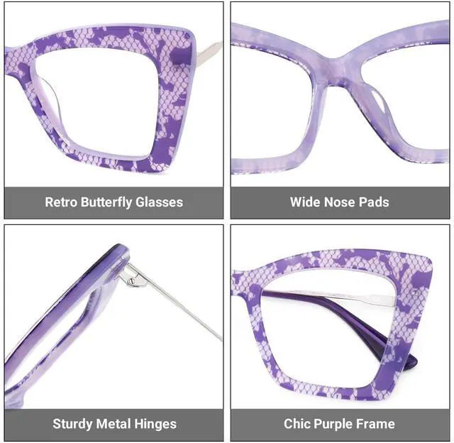 Zeelool Retro Butterfly Glasses for Women Blue Light Blocking Glasses Anti Eyestrain Eyewear ZJGX197476 Purple