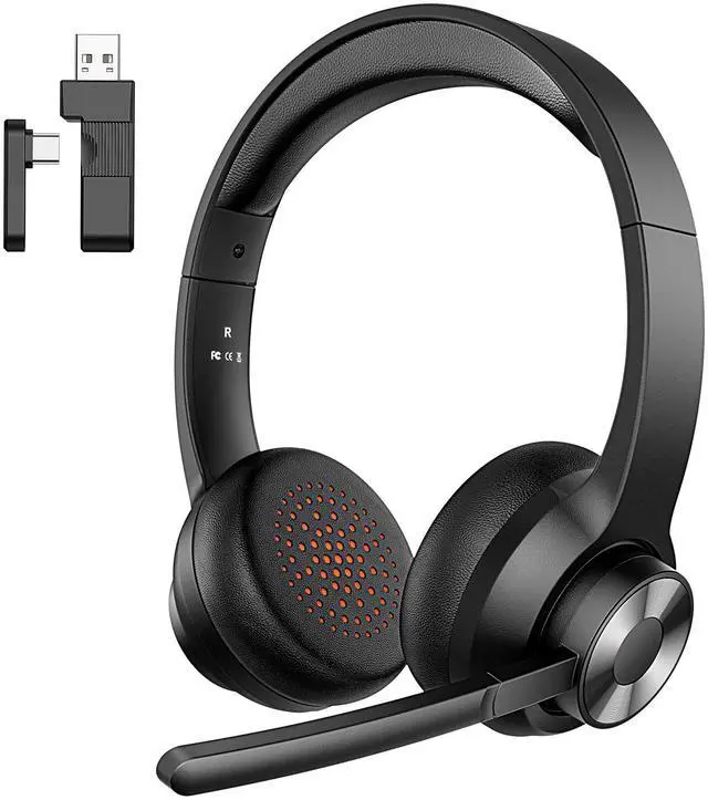 Wireless Headset with Mic for Work, Bluetooth 5.4 Office Headset with AI Noise Cancelling, USB A/C Dongle & Mic Mute for Computer Laptop PC, Lightweight Design for Call Center