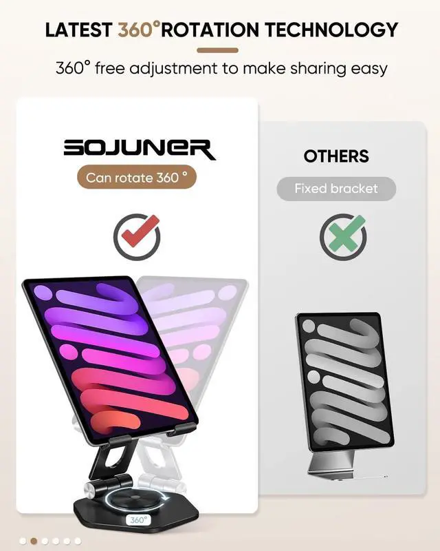 SOJUNER Foldable Aluminum Tablet Stand for Desk, 360° Swivel iPad & Tablet Holder Portable & Stable Desktop Mount for 512.9 in Devices, Black